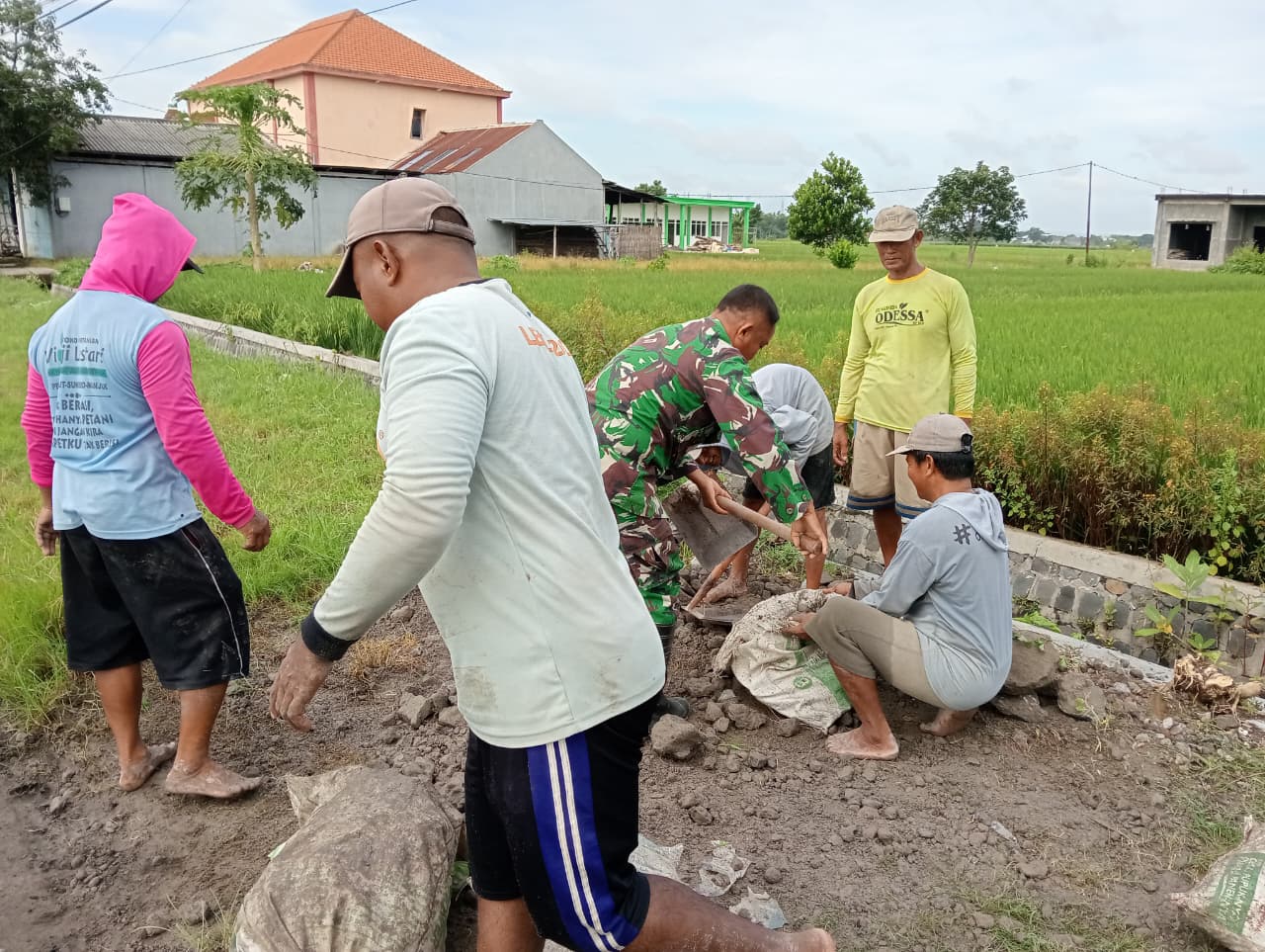 Kegiatan kerja bakti tersebut dilakukan secara gotong royong oleh Babinsa bersama para petani dengan tujuan memperbaiki akses jalan usaha tani agar lebih mudah dilalui oleh para petani, baik saat menuju lahan pertanian maupun saat mengangkut hasil panen dari sawah.